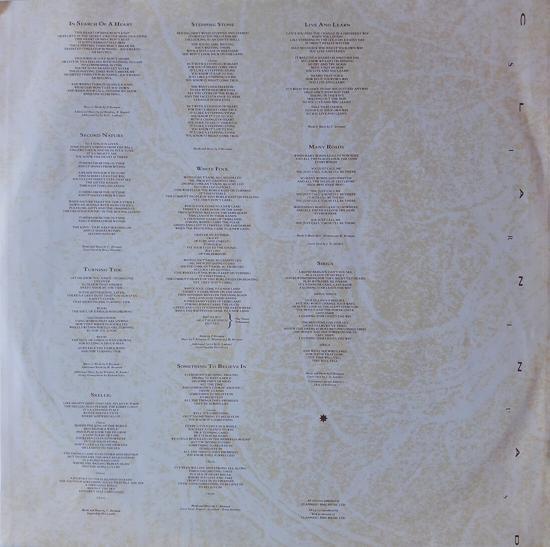 B: World Of Difference (3:55) / In A Lifetime (3:07) / Robin (The Hooded Man) (2:47) / Something To Believe In (4:46) / Newgrange (3:57) / Buachaill An Eirne (3:03) / White Fool (4:38)