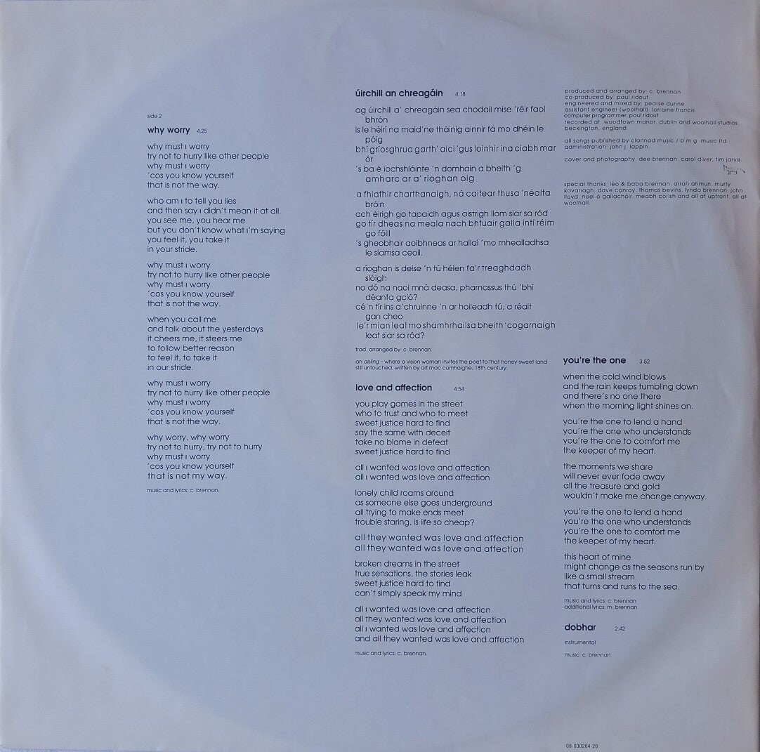 B: Why Worry? (4:25) / Úirchill An Chreagáin (4:18) / Love And Affection (4:54) / You're The One (3:52) / Dobhar (2:42)