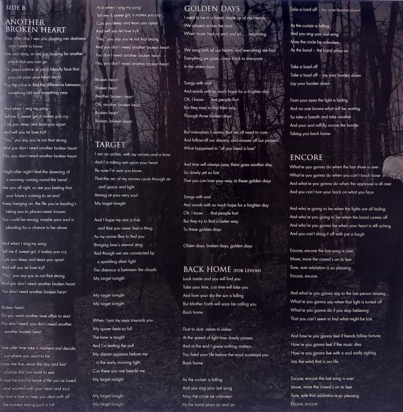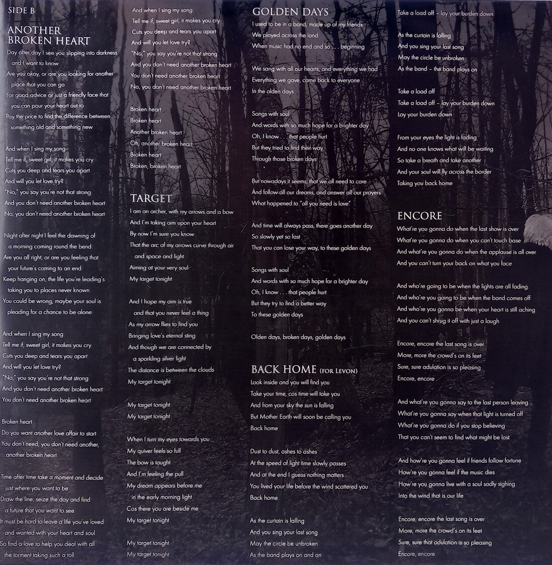 B: Another Broken Heart (4:59) / Target (3:37) / Golden Days (3:40) / Back Home (4:51) / Encore (3:55)