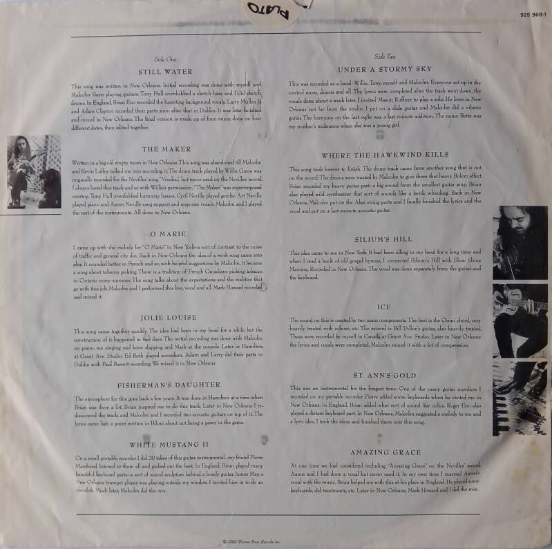 A: Still Water (4:27) / The Maker (4:11) / O Marie (3:12) / Jolie Louise (2:42) / Fisherman's Daughter (2:45) / White Mustang II (2:54)