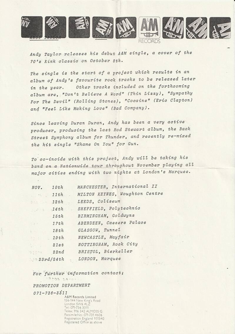 A&M Records, Ltd. AM 596 (aug. 1990) (UK) Incl. Info sheet