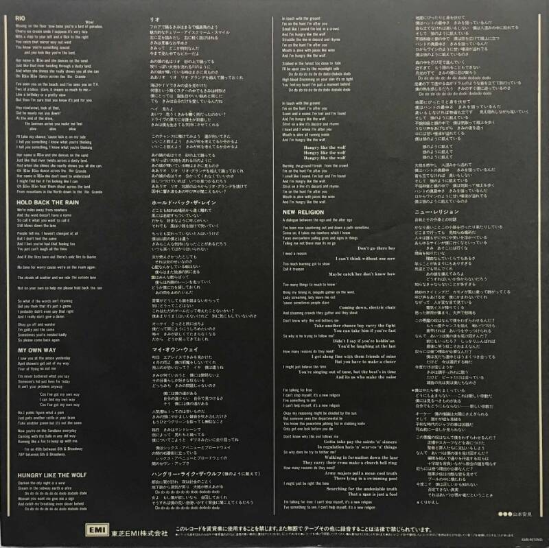 A: Hungry Like The Wolf (Night Version) (5:30) / Rio (Night Version) (6:36)