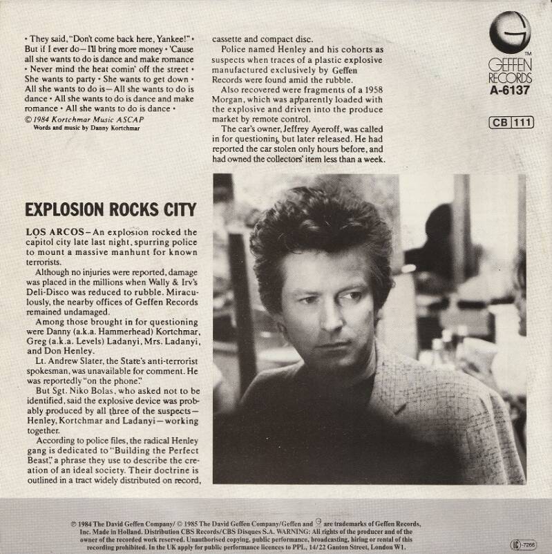 Geffen Records GEFA 6137 (1985) (EUR)