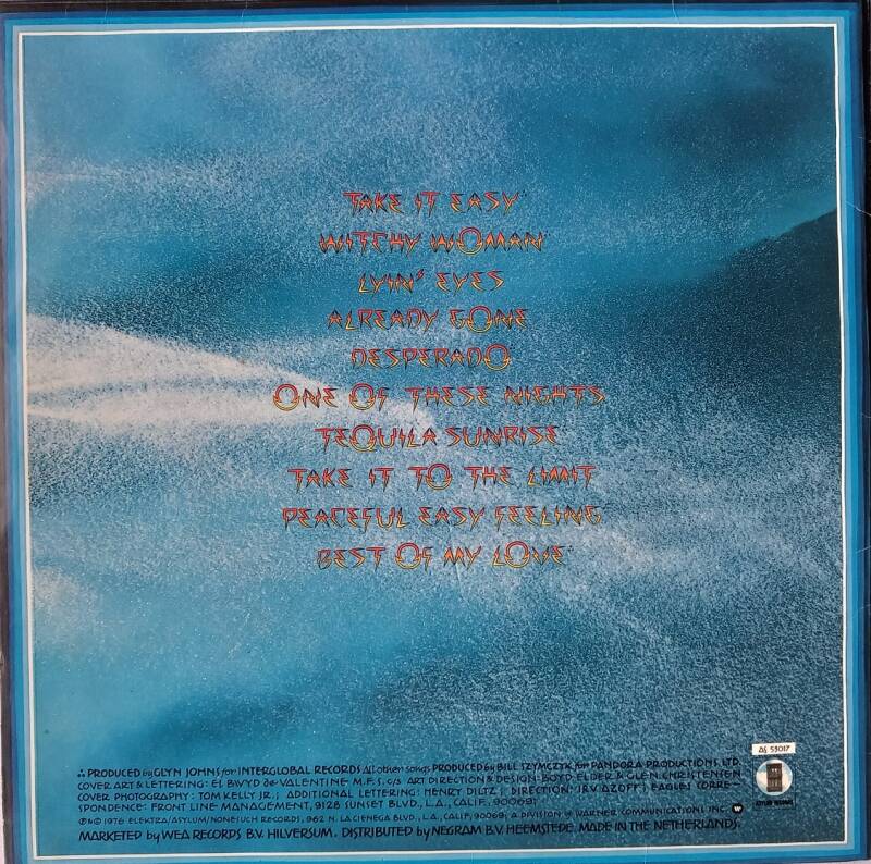 B: One Of These Nights (4:51) / Tequila Sunrise (2:52) / Take It To The Limit (4:48) / Peaceful, Easy Feeling (4:16) / Best Of My Love (4:35)