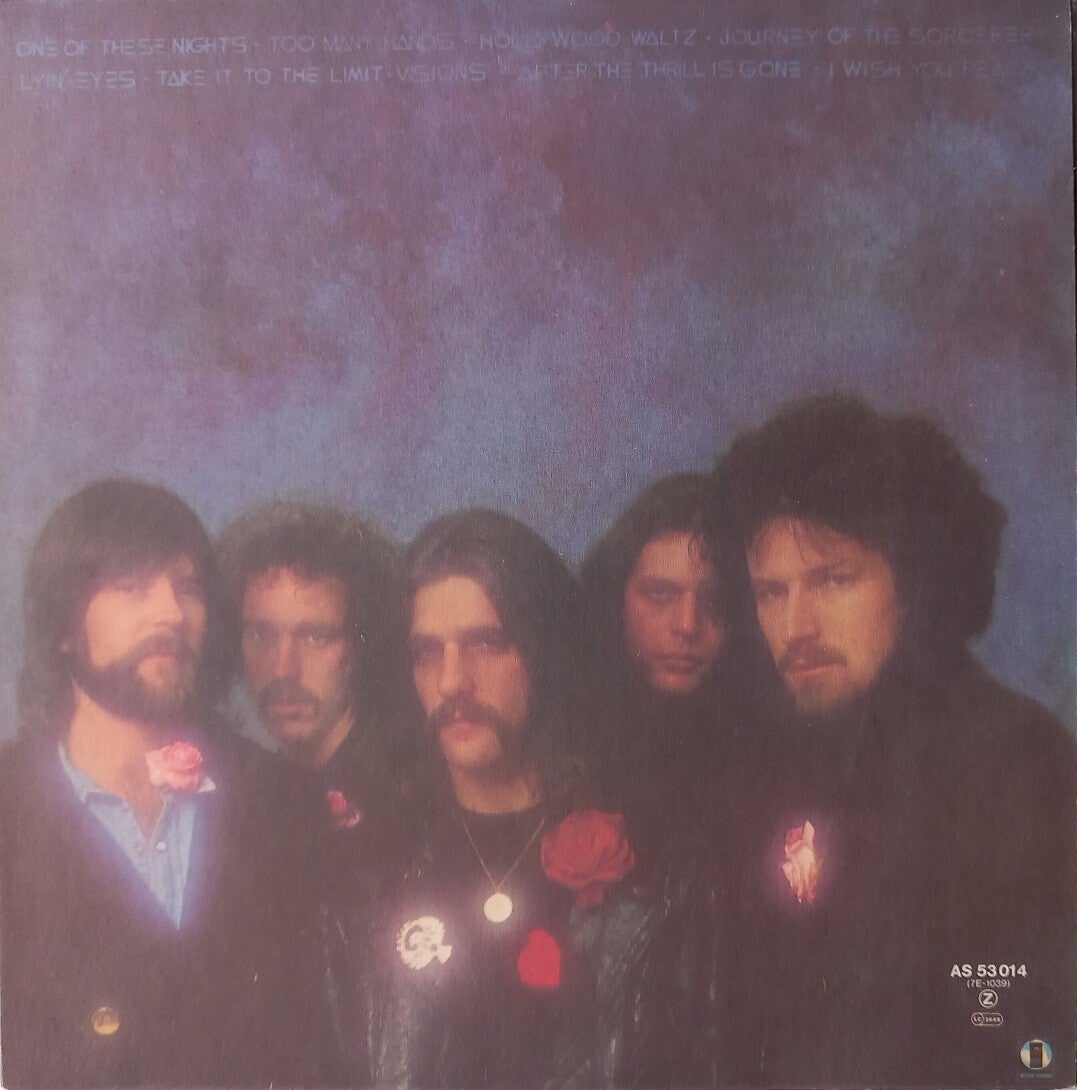 A: One Of These Nights (4:51) / Too Many Hands (4:42) / Hollywood Waltz (4:04) / Journey Of The Sorcerer (6:39)
