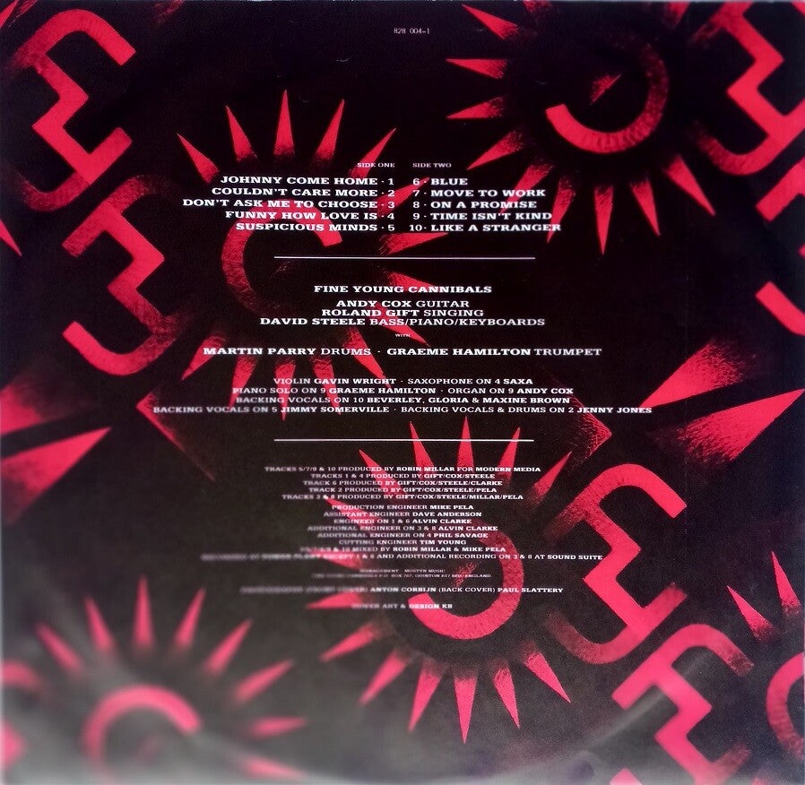 A: Johnny Come Home (3:35) / Couldn't Care More (3:30) / Don't Ask Me To Choose (3:05) / Funny How Love Is (3:28) / Suspicious Minds (3:56)