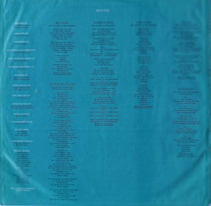 A: Big Love (3:37) / Seven Wonders (3:38) / Everywhere (3:41) / Caroline (3:50) / Tango In The Night (3:56) / Mystified (3:06)
