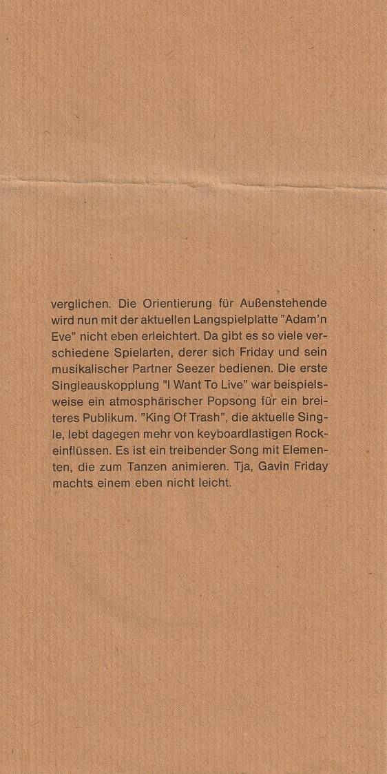 GAVIN FRIDAY AND THE MAN SEEZER - EACH MAN KILLS THE THING HE LOVES