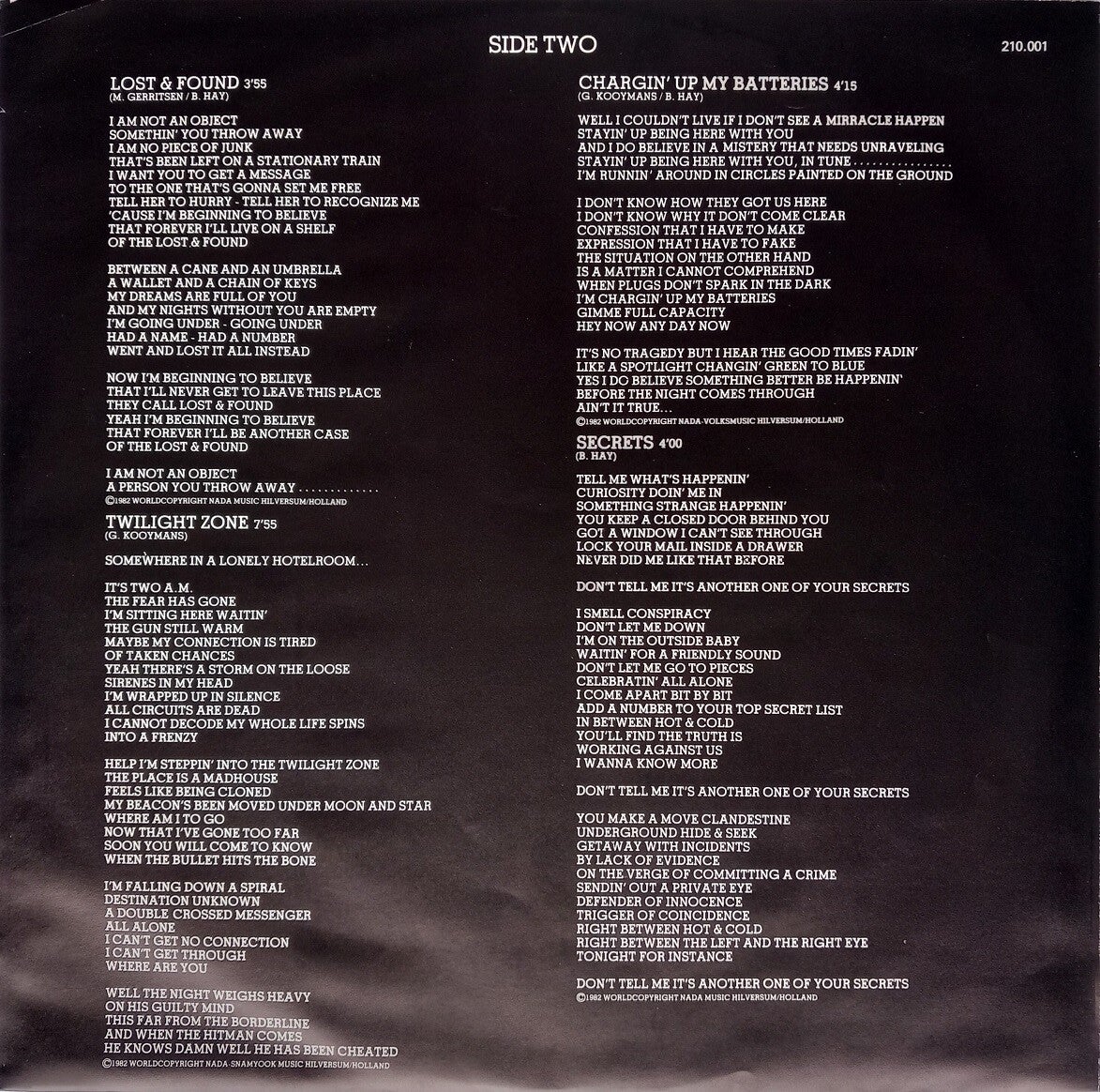 B: Lost And Found (3:55) / Twilight Zone (7:55) / Chargin' Up My Batteries (4:15) / Secrets (4:00)