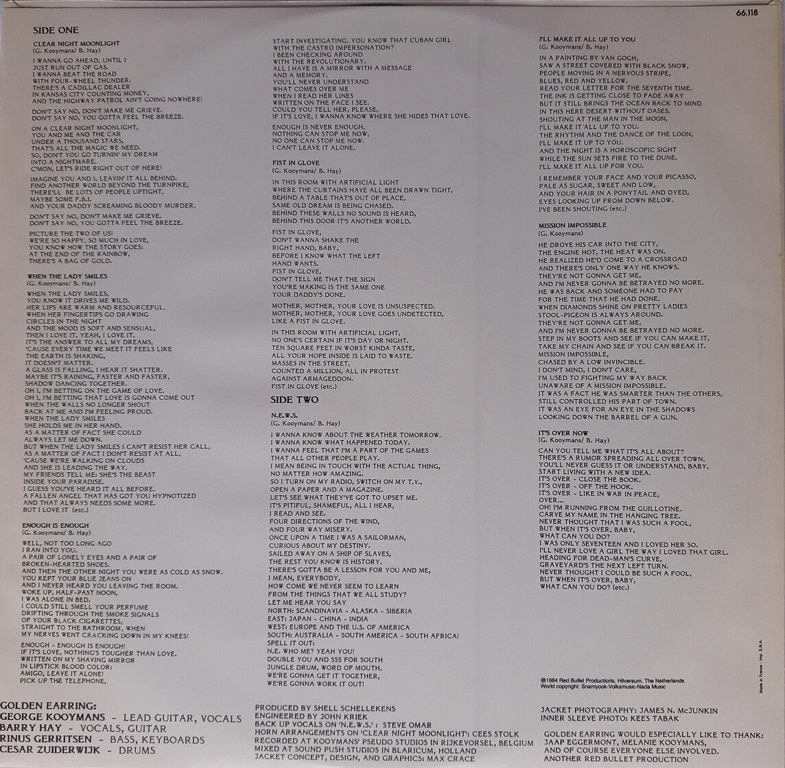 A: Clear Night Moonlight (3:33) / When The Lady Smiles (5:36) / Enough Is Enough (3:45) / Fist In Glove (3:26)