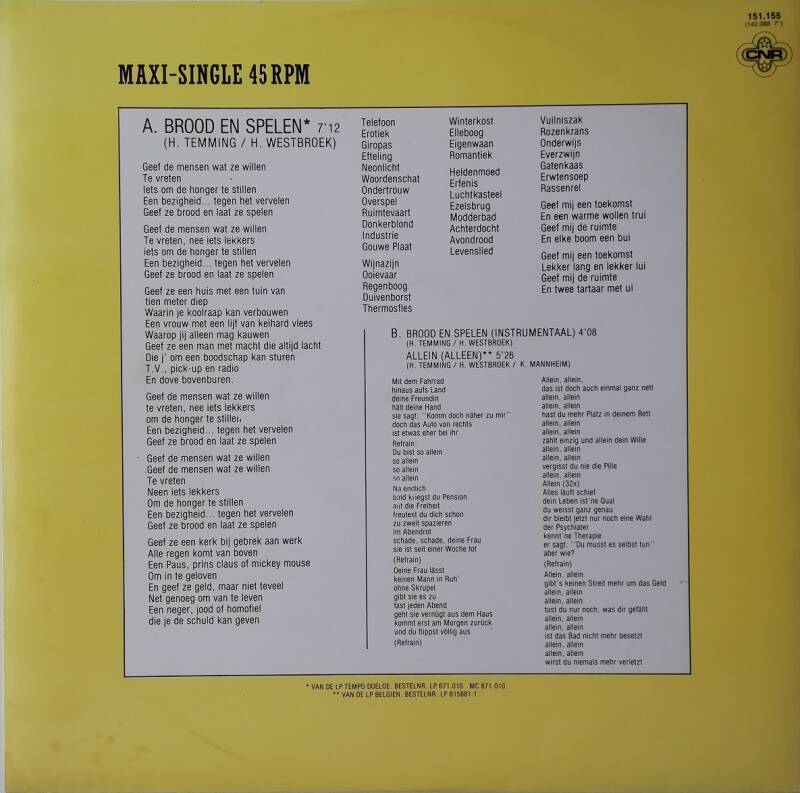B: Brood En Spelen (Instrumentaal) (4:10) / Allein (Alleen) (5:25)