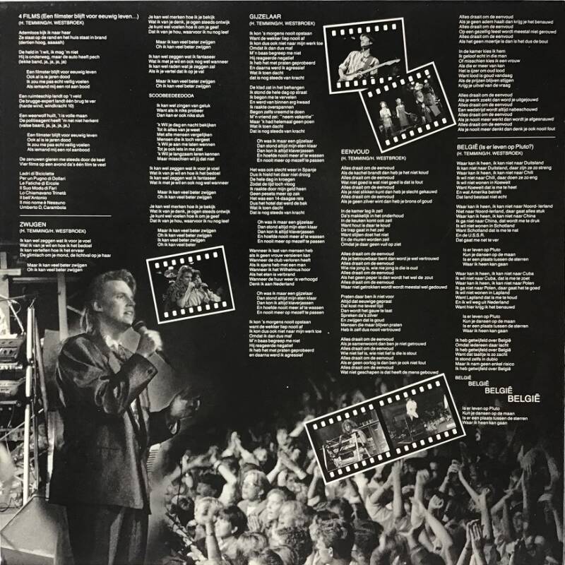A: 4 Films (Een Filmster Blijft Voor Eeuwig Leven...) (3:47) / Zwijgen (3:49) / Gijzelaar (4:16) / Eenvoud (4:04) / België (Is Er Leven Op Pluto?) (6:17) / Sinterklaas (Wie Kent Hem Niet?) (4:17)