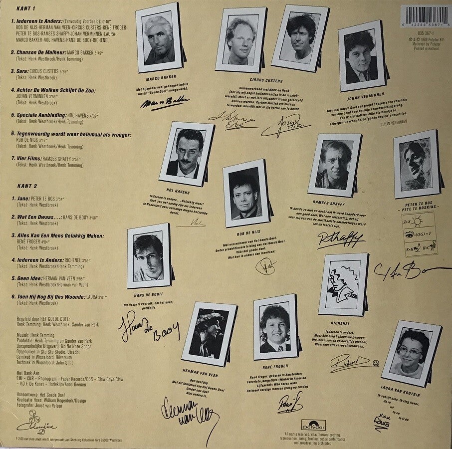 B: Jane (3:54) / Wat Een Dwaas... (3:58) / Alles Kan Een Mens Gelukkig Maken (4:04) / Iedereen Is Anders (3:55) / Geen Idee (2:55) / Toen Hij Nog Bij Ons Woonde (3:01)