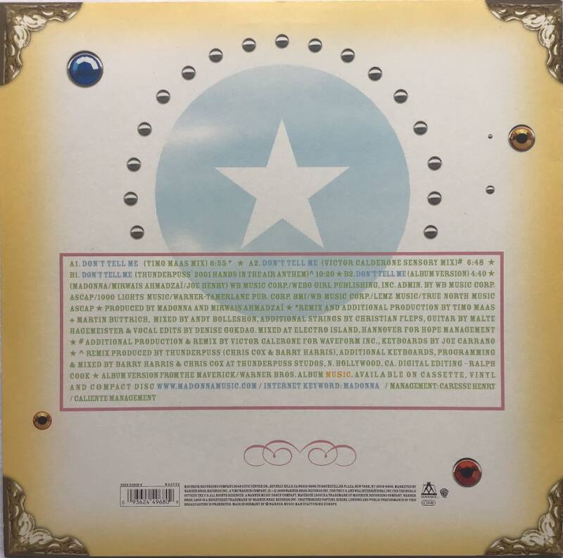 B: Don't Tell Me (Thunderpuss 2001 Hands In The Air Anthem) (10:20) / Don't Tell Me (Album Version) (4:40)