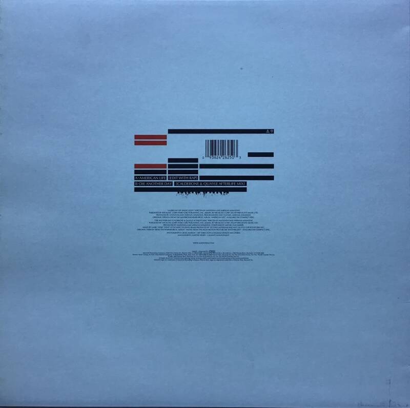A: American Life (Missy Elliot American Dream Remix) (4:49) / American Life (Oakenfold Downtempo Remxi) (5:32)