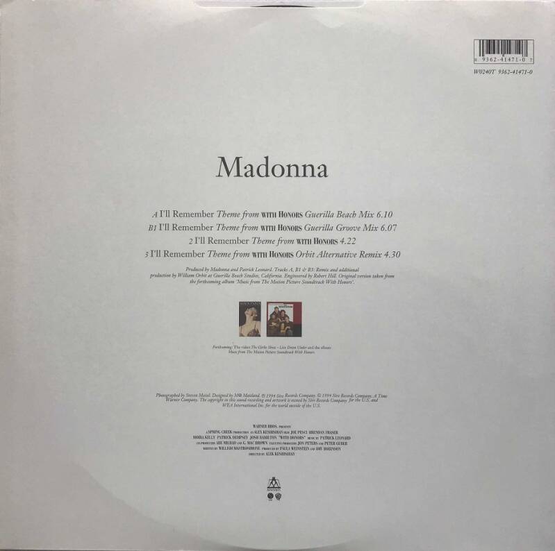 B: I'll Remember (Theme From 'With Honors') (4:22) / I'll Remember (Theme From 'With Honors') (Orbit Alternative Remix) (4:30)