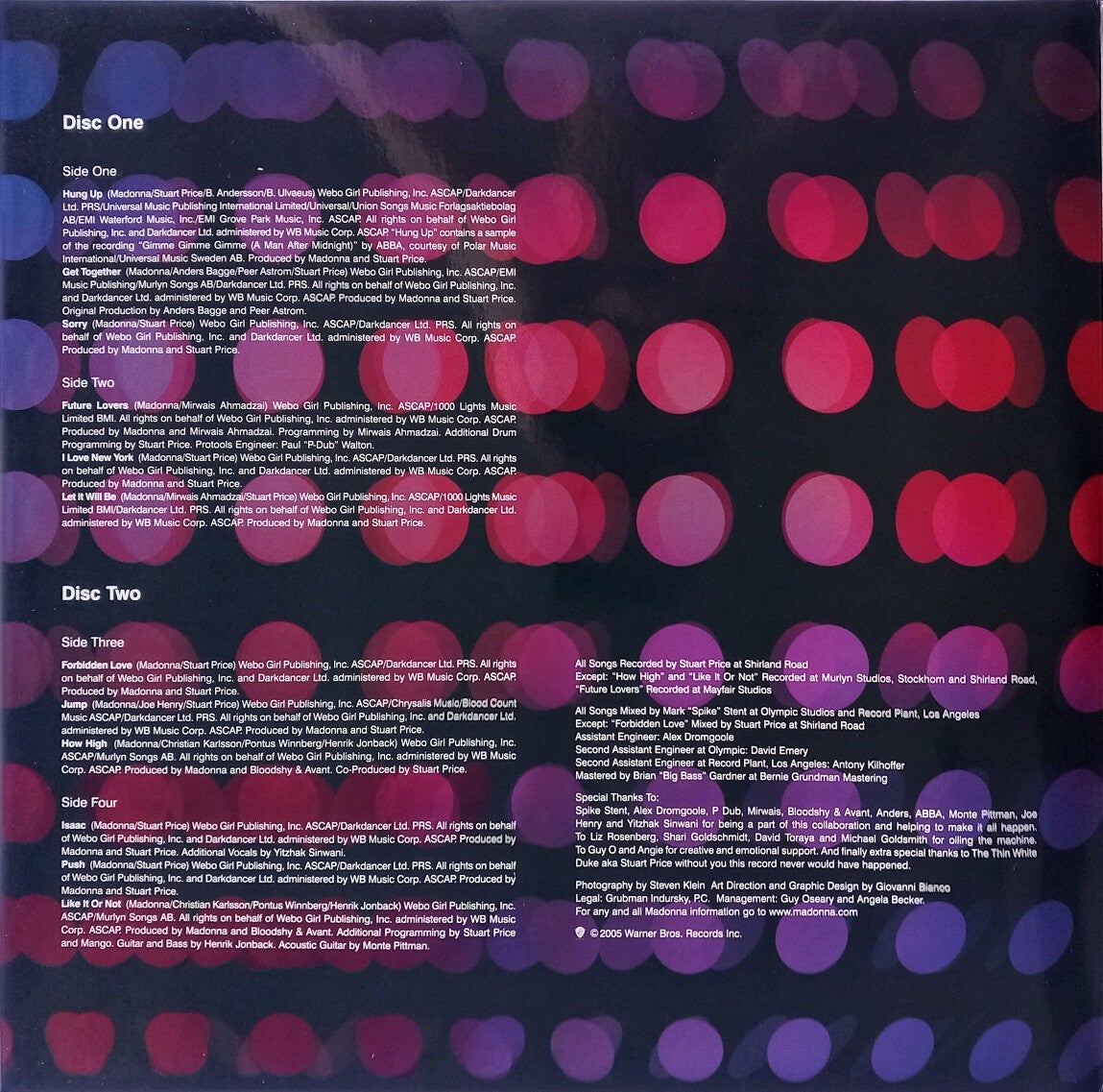 B: Don't Tell Me (4:40) / What It Feels Like For A Girl (4:43) / Paradise (Not For Me) (6:33) / Gone (3:24) / American Pie (4:33)