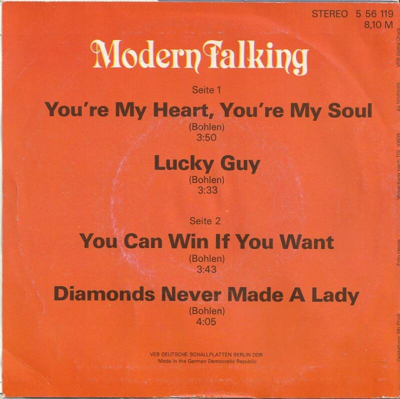 A: You're My Heart, You're My Soul (3:50) / Lucky Guy (3:33)