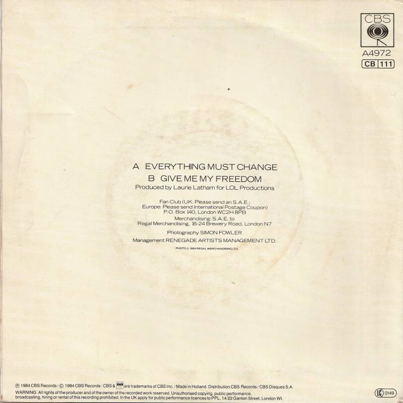 CBS Records  CBS 650254 7  (nov. 1986)  (EUR)