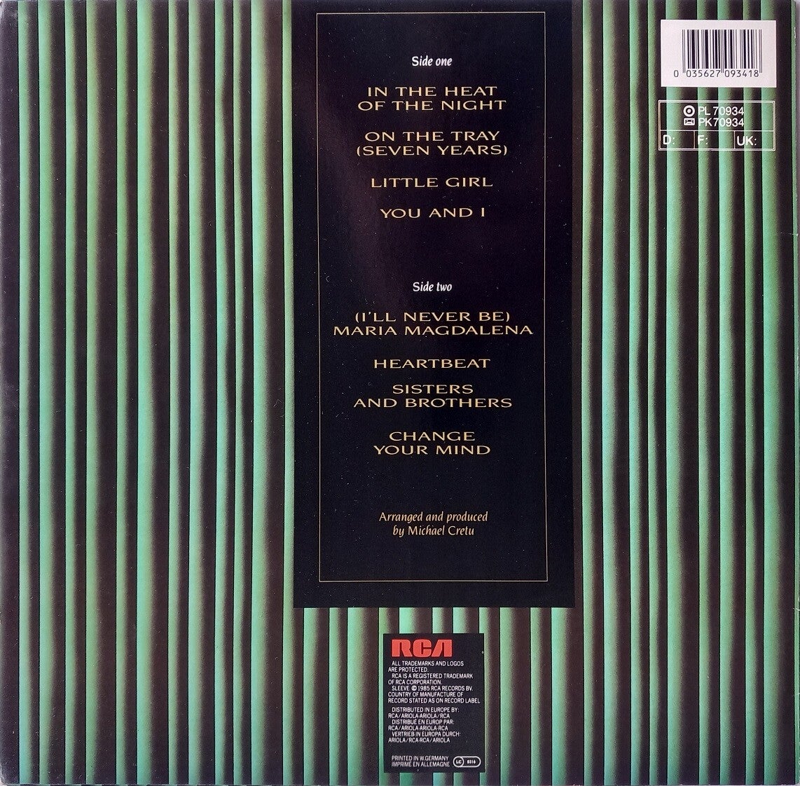 B: (I'll Never Be) Maria Magdalena (5:55) / Heartbeat (That's Emotion) (4:53) / Sisters And Brothers (3:23) / Change Your Mind (4:04)