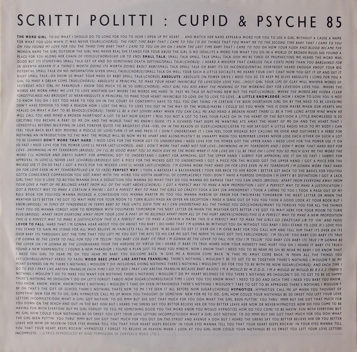 A: The Word Girl (Flesh & Blood) (4:21) / Small Talk (3:36) / Absolute (4:21) / A Little Knowledge (4:57) / Don't Work That Hard (3:56)