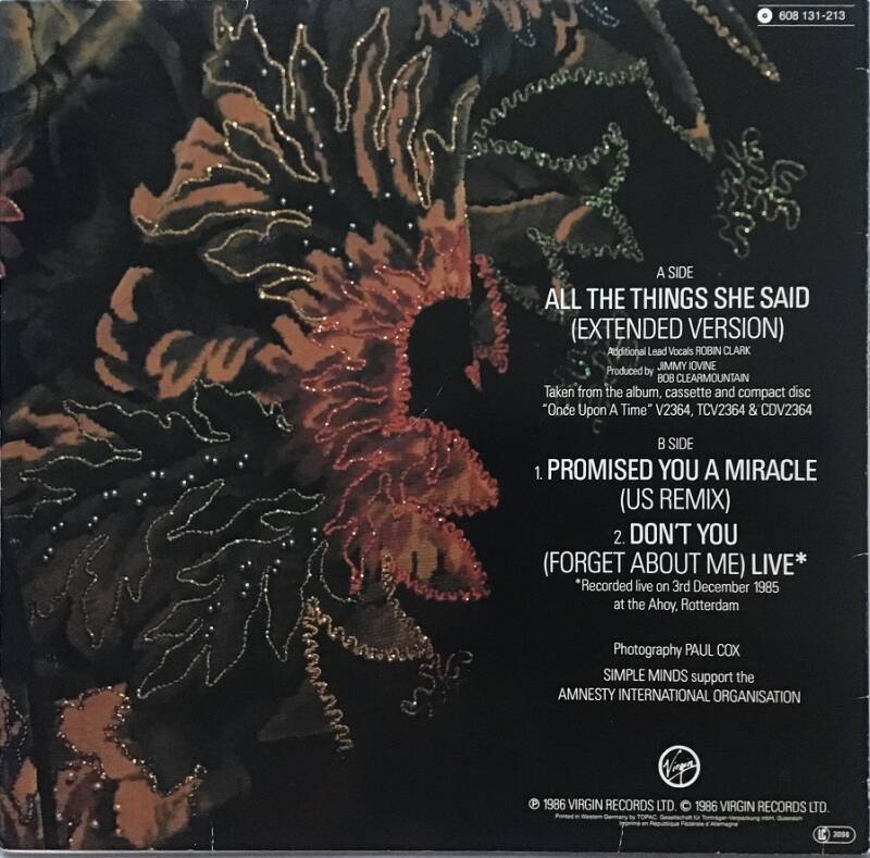 B: Promised You A Miracle (US Remix) (6:02) / Don't You (Forget About Me) (live) (9:05)