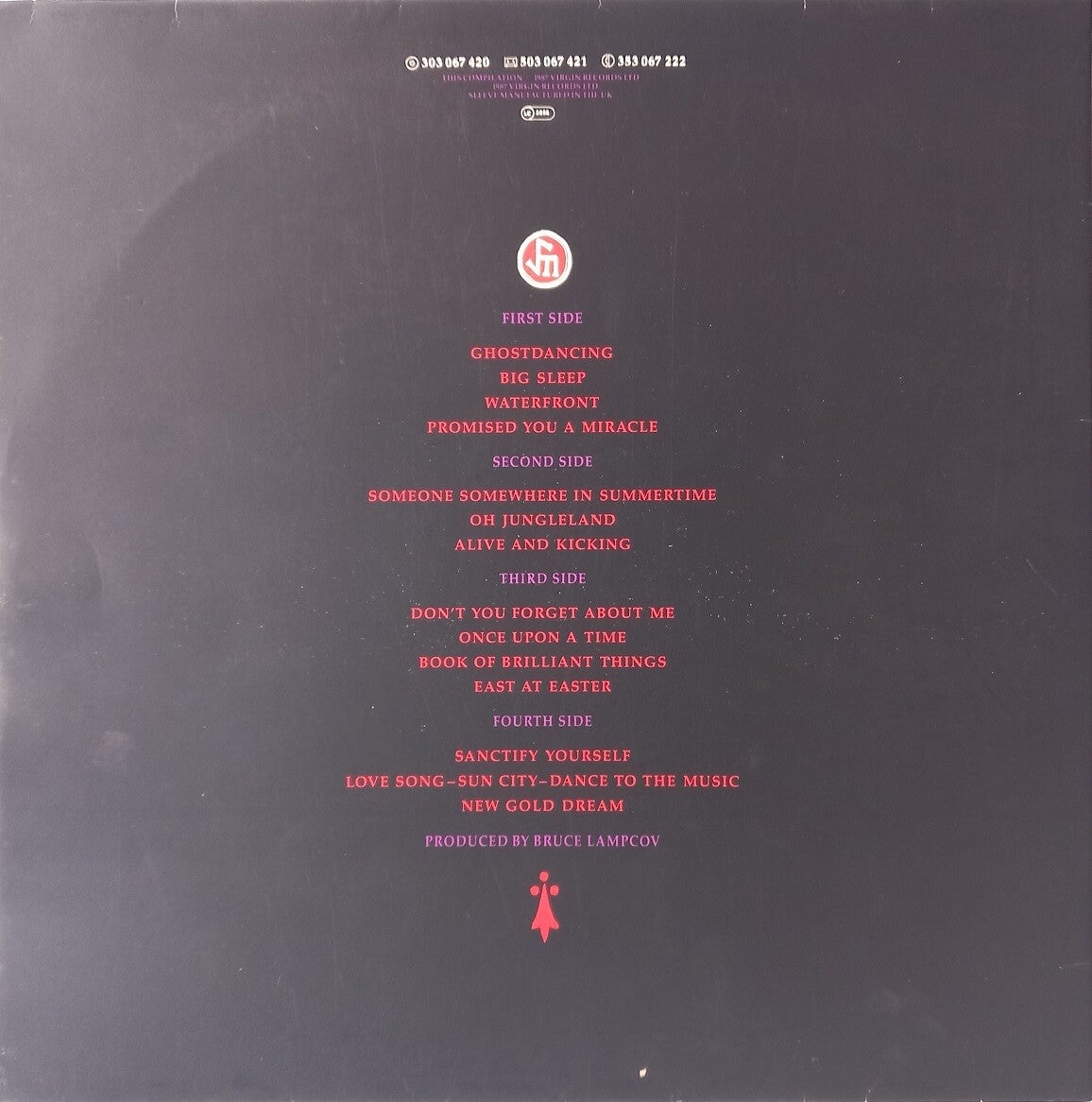 A: Someone Somewhere In Summertime (4:56) / Colours Fly And Catherine Wheel (4:53) / Promised You A Miracle (4:20) / Big Sleep (5:05) / Somebody Up There Likes You (5:43)