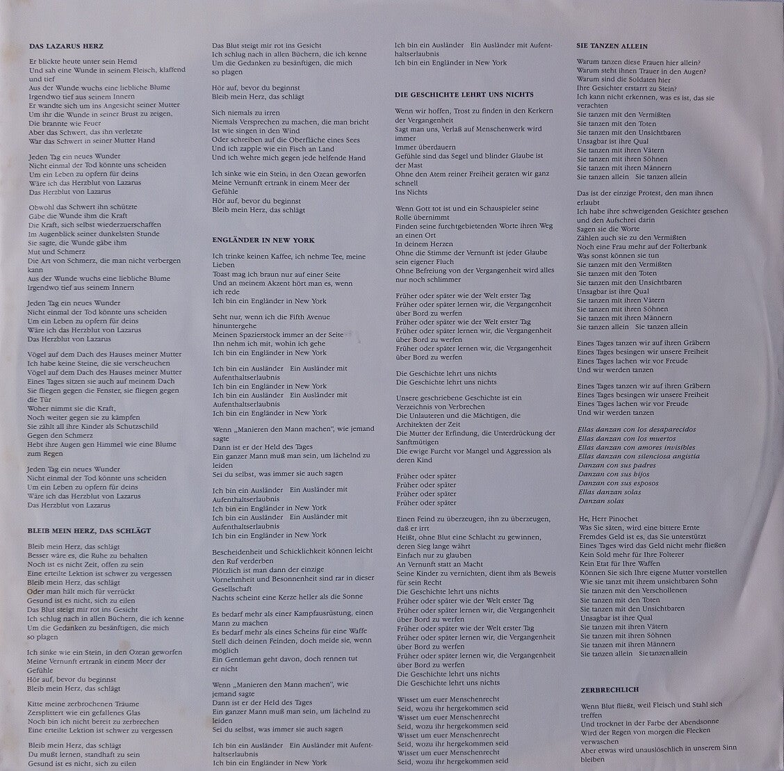 B: History Will Teach Us Nothing (4:58) / They Dance Alone (Gueca Solo) (7:16) / Fragile (3:54)