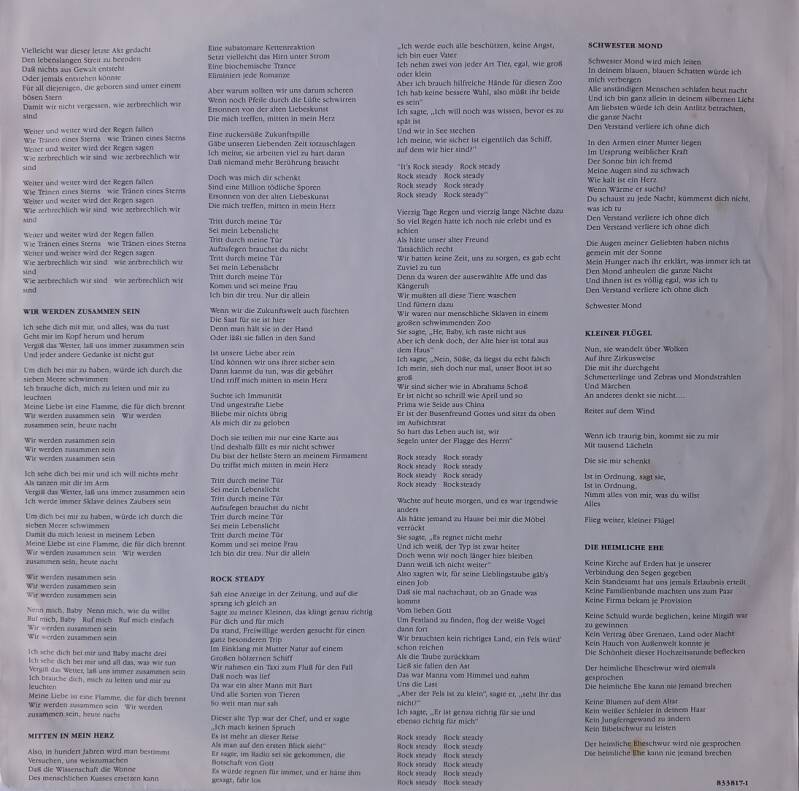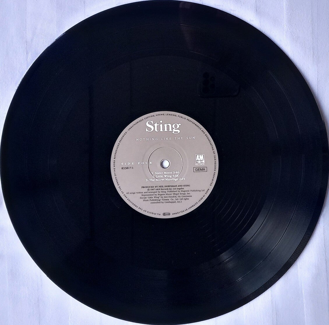 B: We Work The Black Seam (5:40) / Consider Me Gone (4:21) / The Dream Of The Blue Turtles (1:15) / Moon Over Bourbon Street (3:59) / Fortress Around Your Heart (4:48)