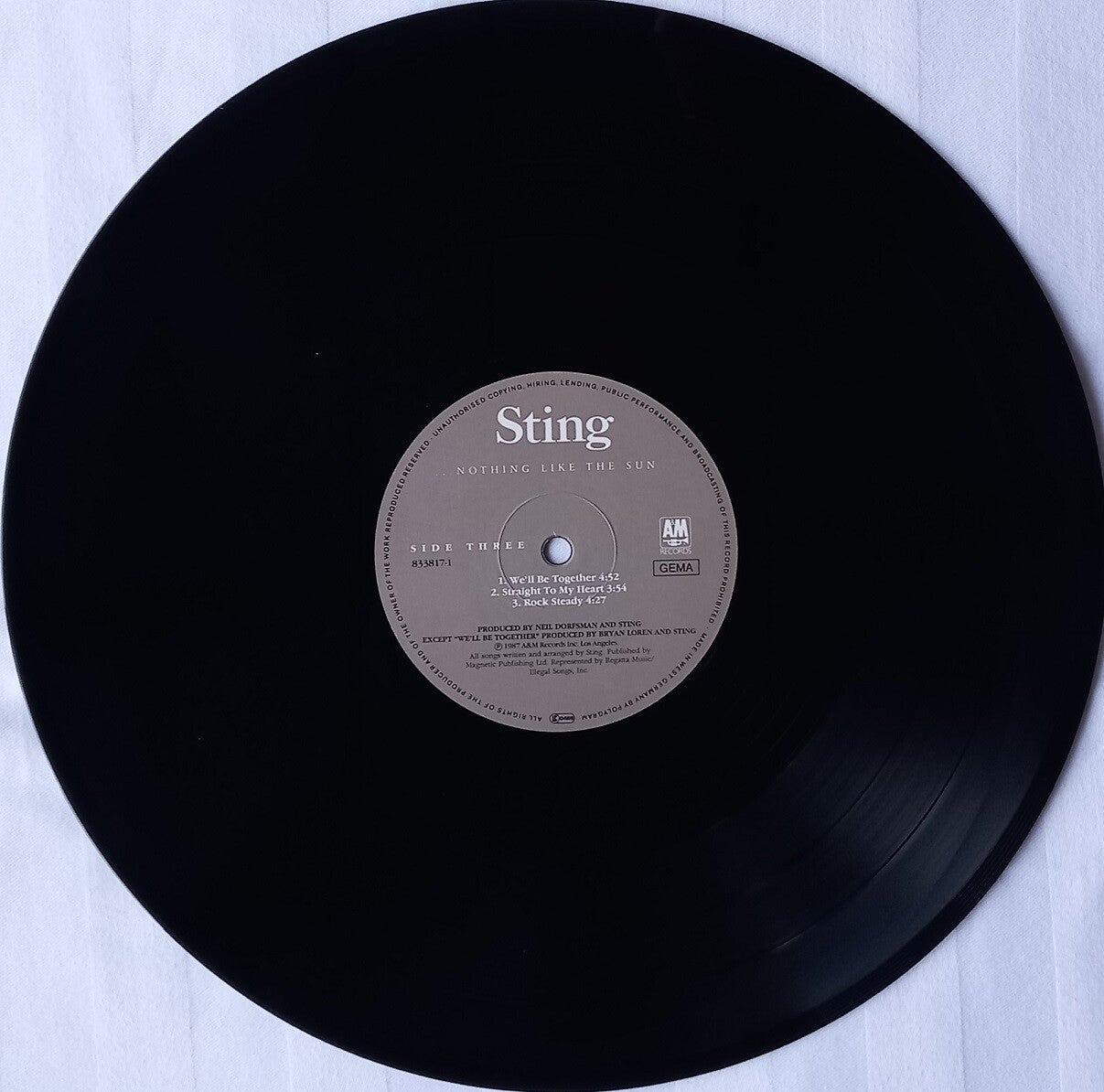 A: If You Love Somebody Set Them Free (4:14) / Love Is The Seventh Wave (3:30) / Russians (3:57) / Children's Crusade (5:00) / Shadows In The Rain (4:56)