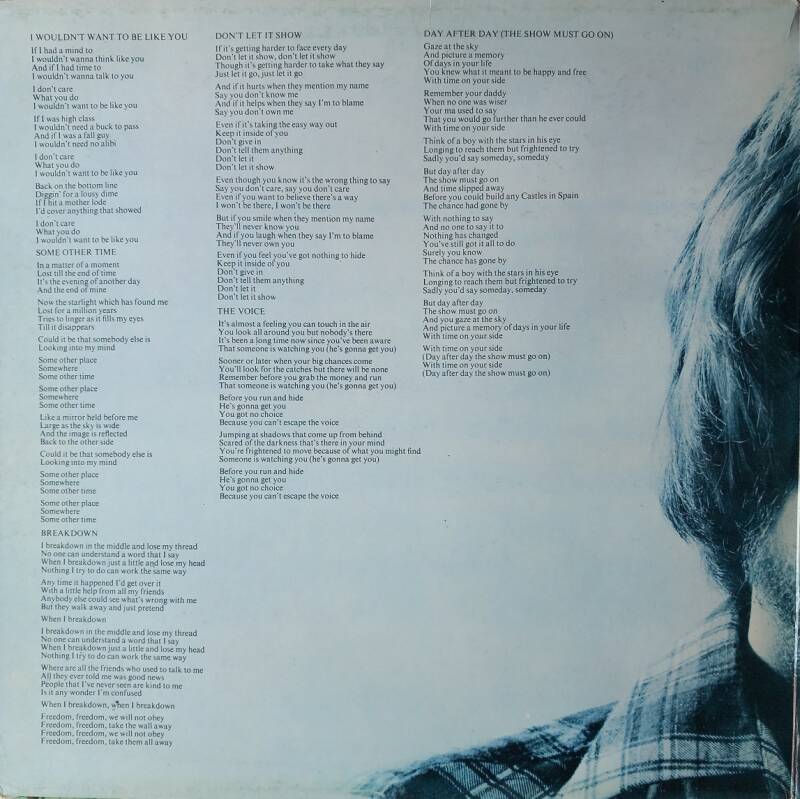 A: I Robot (6:06) / I Wouldn't Want To Be Like You (3:19) / Some Other Time (4:05) / Breakdown (3:50) / Don't Let It Show (4:21)
