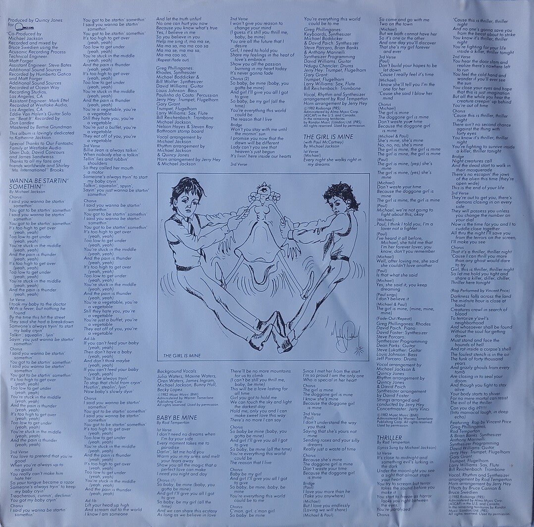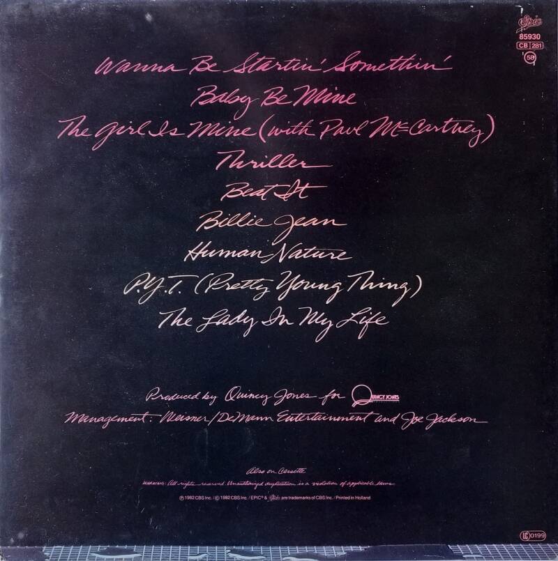 A: Wanna Be Startin' Somethin' (6:02) / Baby Be Mine (4:20) / The Girl Is Mine (3:42) / Thriller (5:57)
