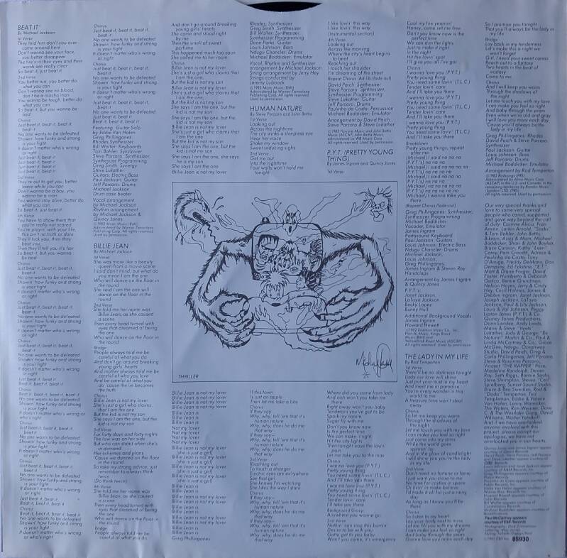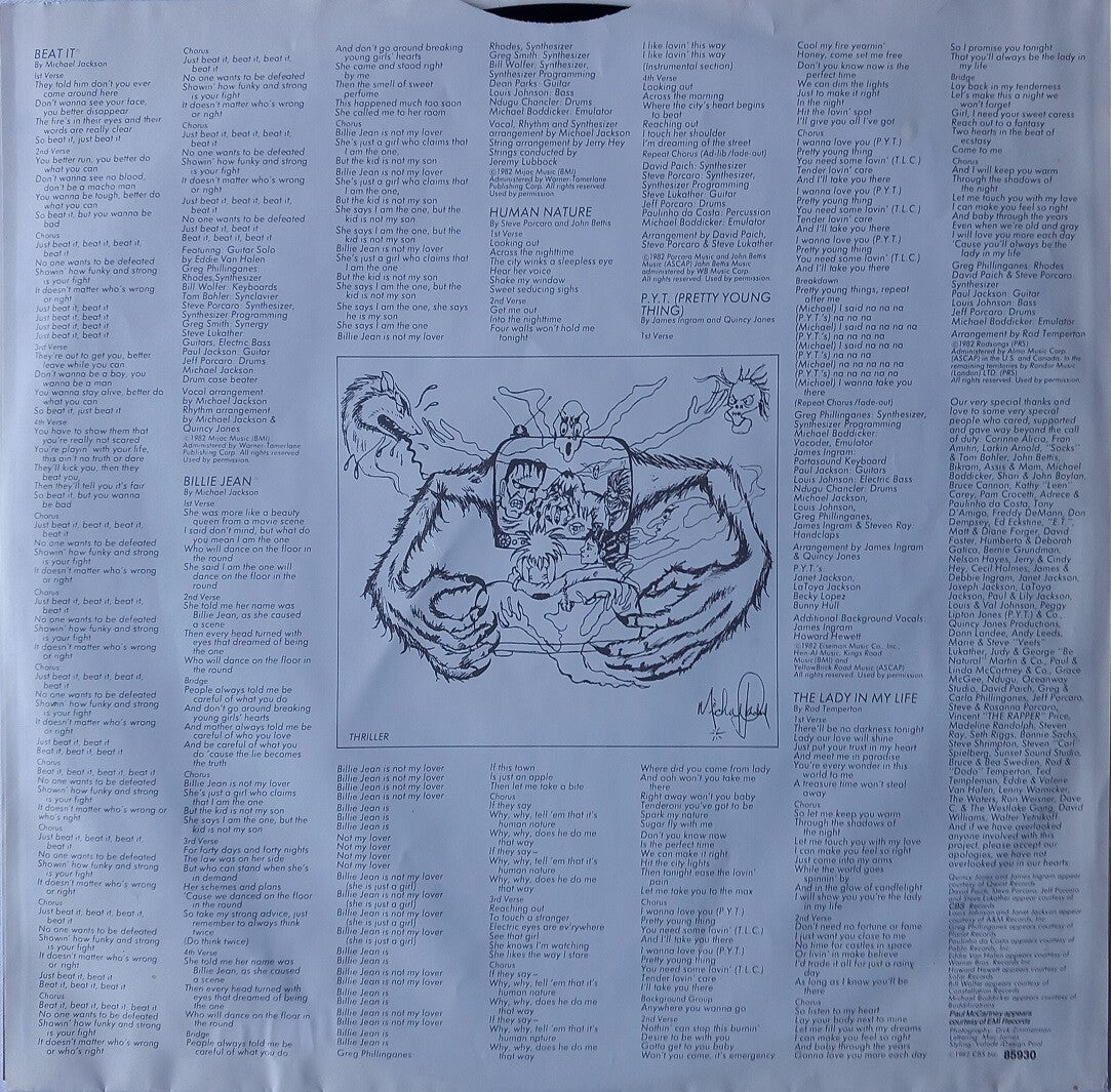 B: Beat It (4:17) / Billie Jean (4:57) / Human Nature (4:05) / P.Y.T. (Pretty Young Thing) (3:58) / The Lady In My Life (4:57)