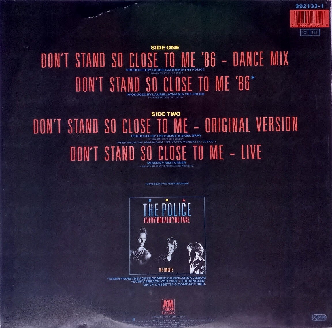 A: Don't Stand So Close To Me '86 (Dance Mix) (6:32) / Don't Stand So Close To Me '86 (4:47)